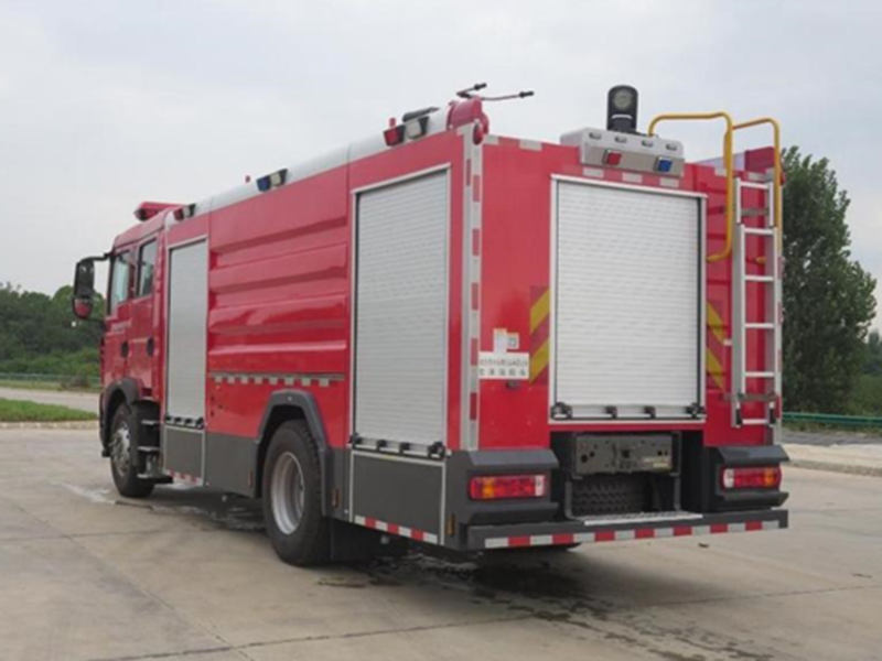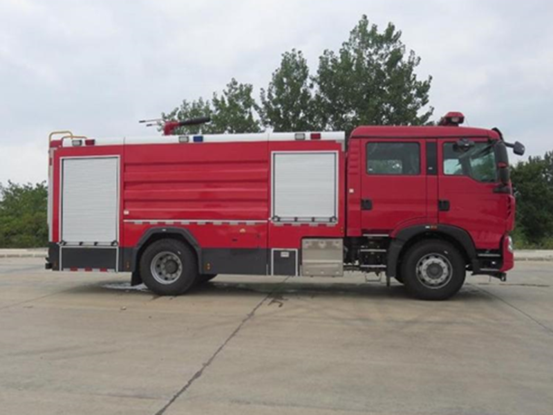 豪沃單橋水罐消防車,整車由二類汽車底盤、罐體、消防泵、管路、儀表電路系 統(tǒng)等部件組成,原裝雙排駕駛室可乘坐2+4人;該車為外露罐結(jié)構(gòu),車身前部為器材 箱構(gòu)成,中部為水罐,尾部為泵房。水罐為碳鋼材質(zhì),內(nèi)部噴涂環(huán)氧底漆和環(huán)氧瀝青